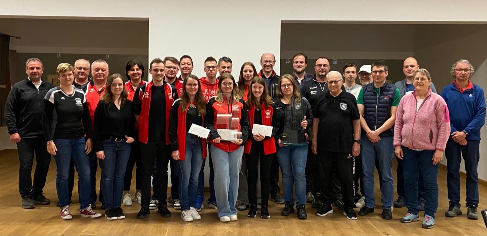 Sportleiter Andreas Hager berichtete über die Schießergebnisse und Schießveranstaltungen der Gewehr- und Pistolenschützen. Im Jahr 2022 konnte eine Pistolenmannschaft eröffnet werden. Beim Gaukönigschießen in Windorf gewann Maria Kaiser mit einem 27,8 Teiler die Wertung der Schützenklasse und wurde Gaudamenkönigin. Cornelia Orthuber erzielte in dem Wettkampf um die Gaujungendkönigswürde Platz Zwei. Schützenkönig 2023 wurde Jonas Koblbauer mit eine 5,0 Teiler, auf ihn folgen mit einem 6,0 und einem 6,4 Teiler Tobias Petzenhauser und Andreas Hager. Jugendkönigin wurde Cornelia Orthuber mit einem 3,1 Teiler, gefolgt von Thomas Fischer (5,0 Teiler) und Larissa Höng (6,3 Teiler).